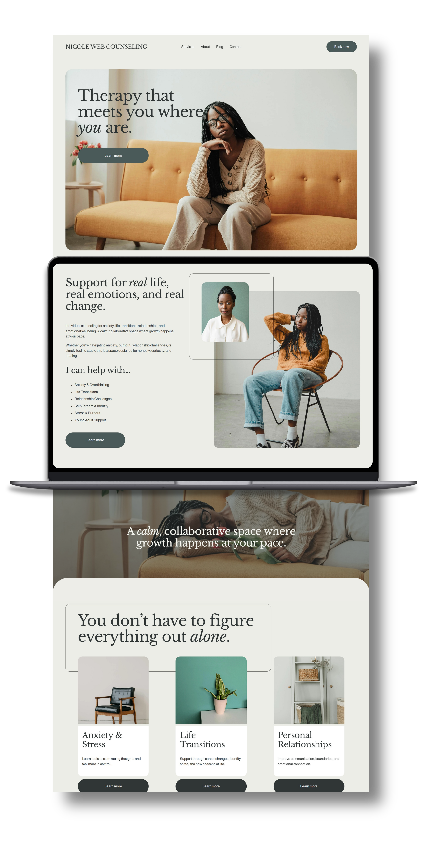 Perfect for therapists, counselors, coaches, and service-based professionals who want a website that feels welcoming, professional, and easy to update.