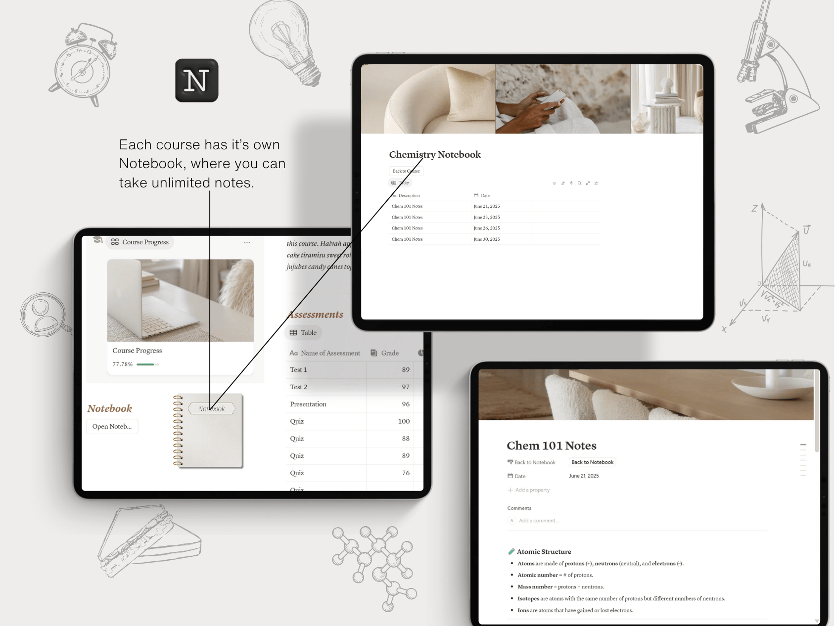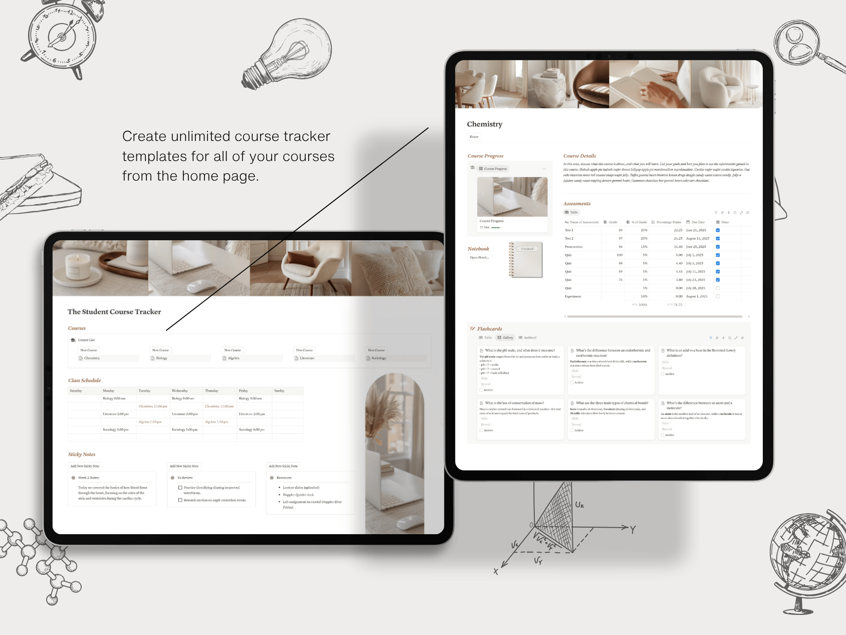 Stay ahead in every class and organize your academic life with intention using this beautifully designed Notion Student Course Tracker. Whether you're a high school senior, a busy college student, or returning to school after a break, this all-in-one template helps you track courses, schedules, grades, notes, and study materials all in one clean and calming workspace.